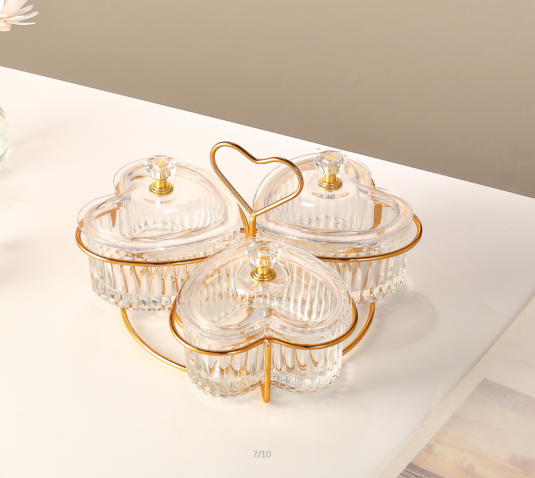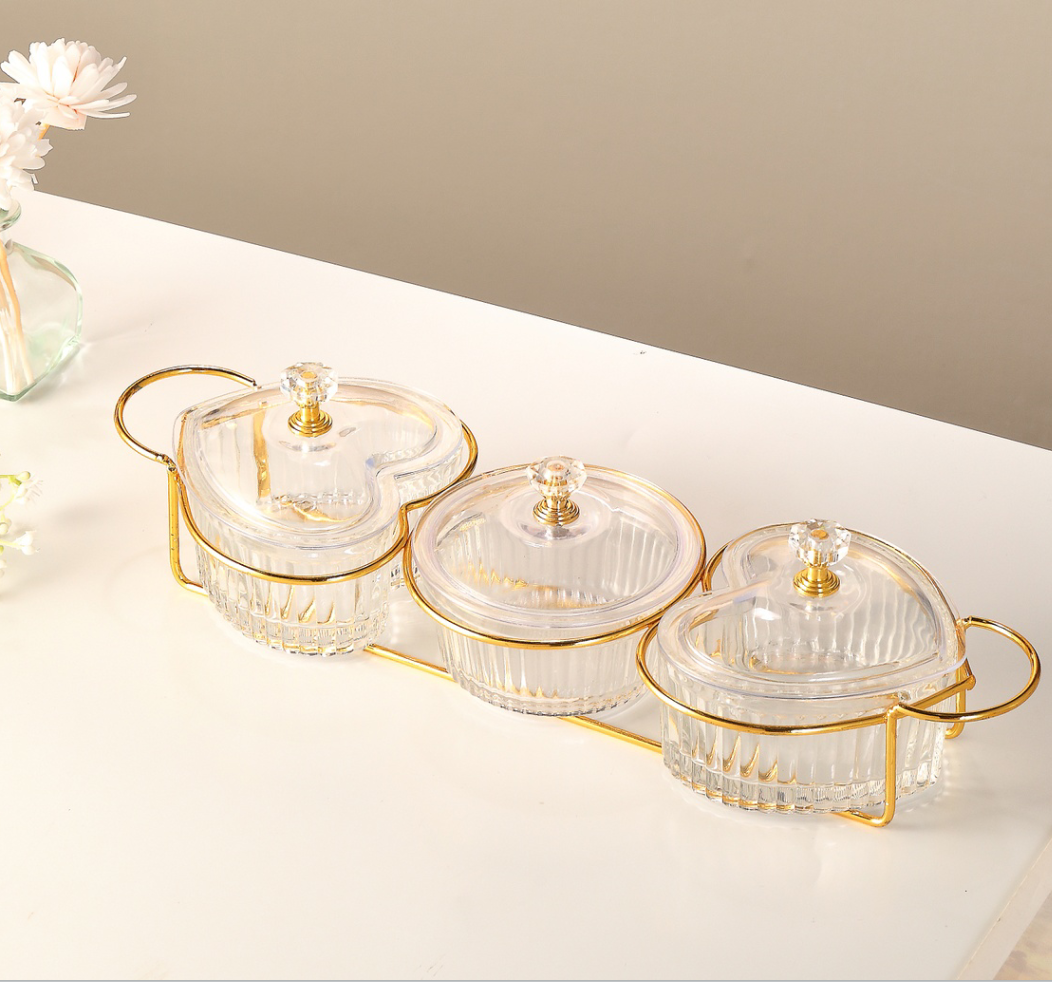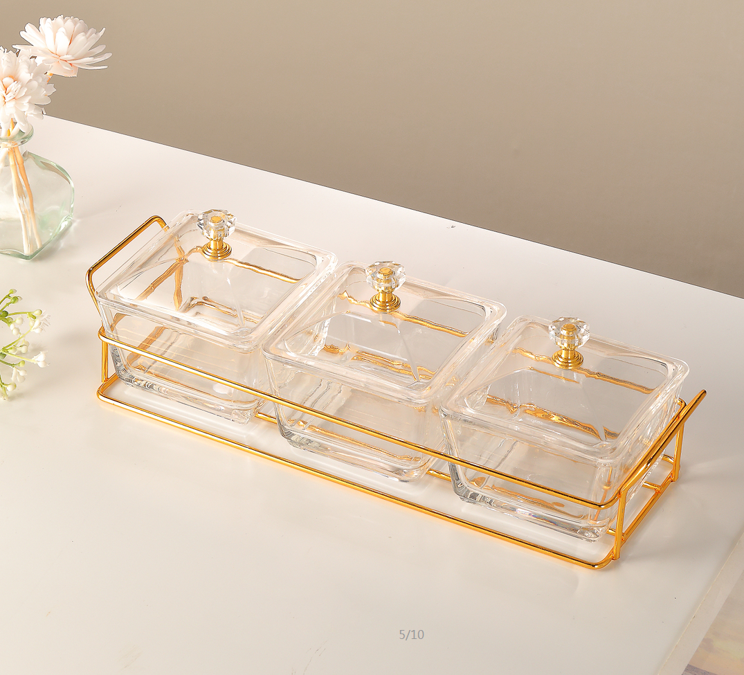 Стеклянная банка для закусок и приправ на устойчивой железной подставке